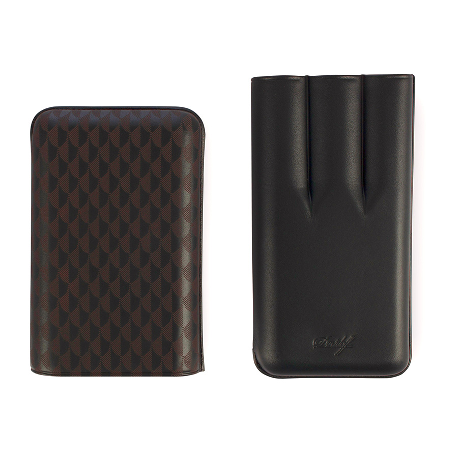 Cigarretui i kalvskinn för 3 cigarrer i upp till en diameter på 24 mm. Cigarretuierna är tillverkade i Spanien med en ett lasergraverat mönster.