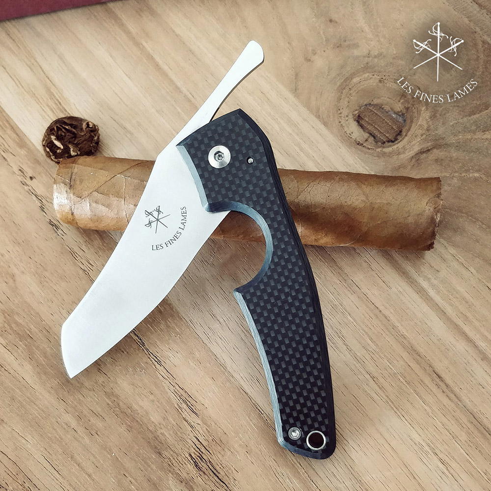 Tillverkade i Frankrike med blad i 14C28N stål. Bladet har en gravyr med en karta över Kuba. Handtaget är tillverkat av kolfiber.