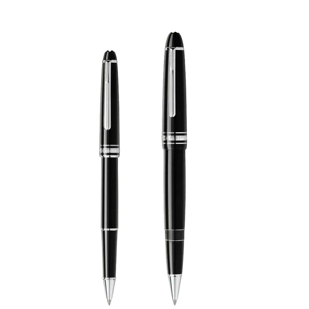 Montblancs rollerball‑pennor ger en mjuk och flytande skrivkänsla tack vare sitt vattenbaserade bläck, som också ger en djup och tydlig färg. De kräver mindre tryck än kulspetspennor och har en smalare spets för mer precision