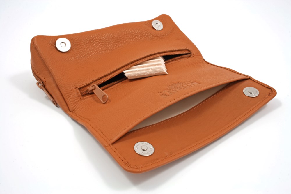 Kombipung för 1 pipa tillverkad i mjukt koskinn. Pungen är utrustad med tålig dragkedja och magnetlås.